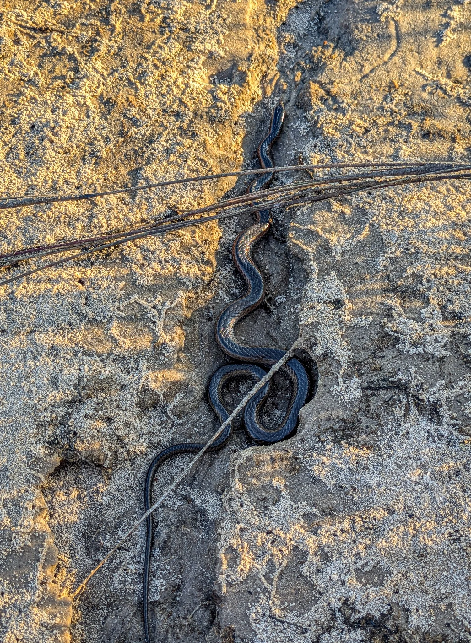 Baby cobra on the banks of the Zambezi River. I was looking for a place to camp beside the river, but realised the holes in the sand I kept seeing were most likely those created by snakes.