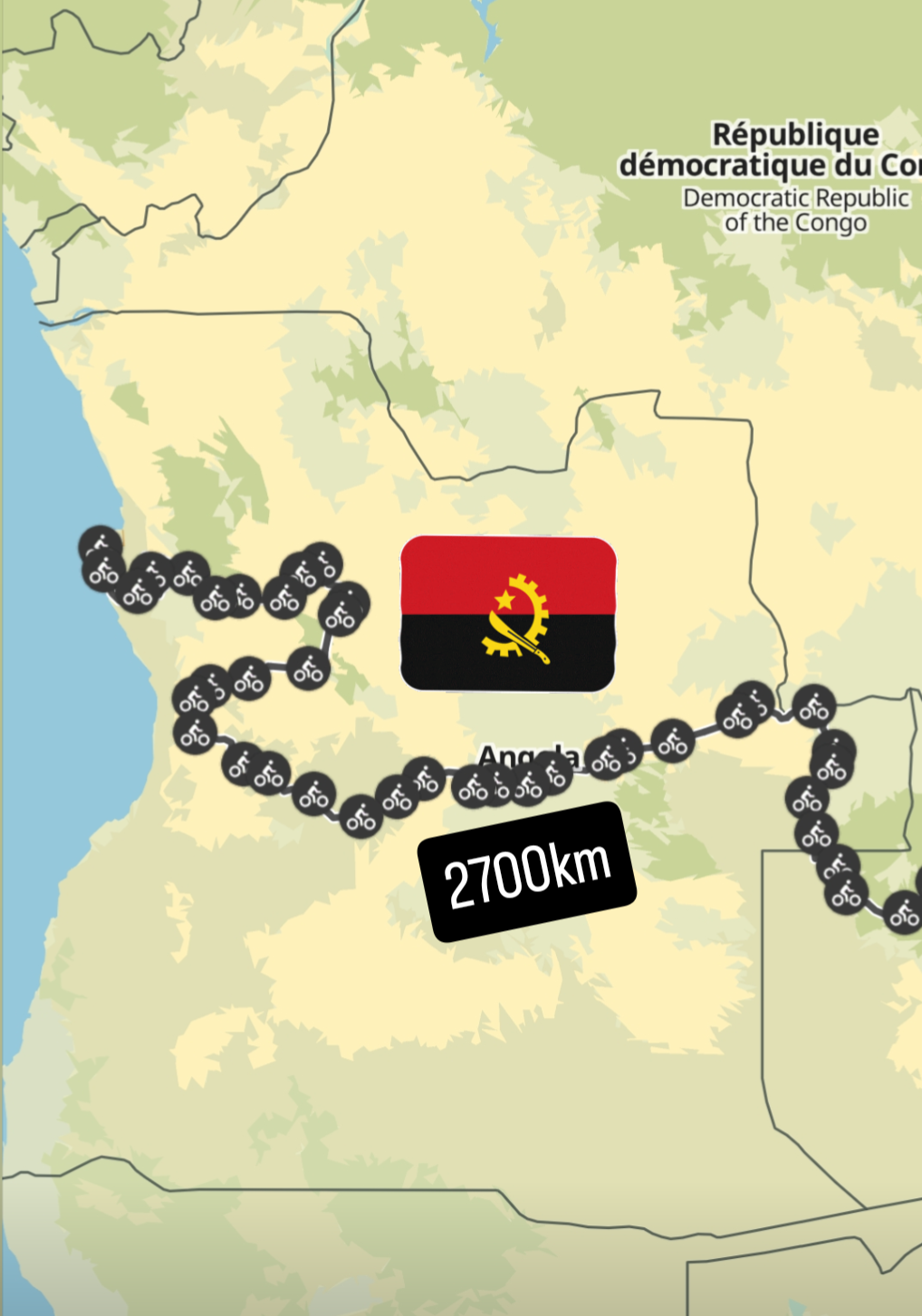 My route through Angola was no more direct than it had been through Zambia. Almost all the roads/tracks in the east of the country were unpaved. In total, I cycled just over 2700 km during 2 months in the country.