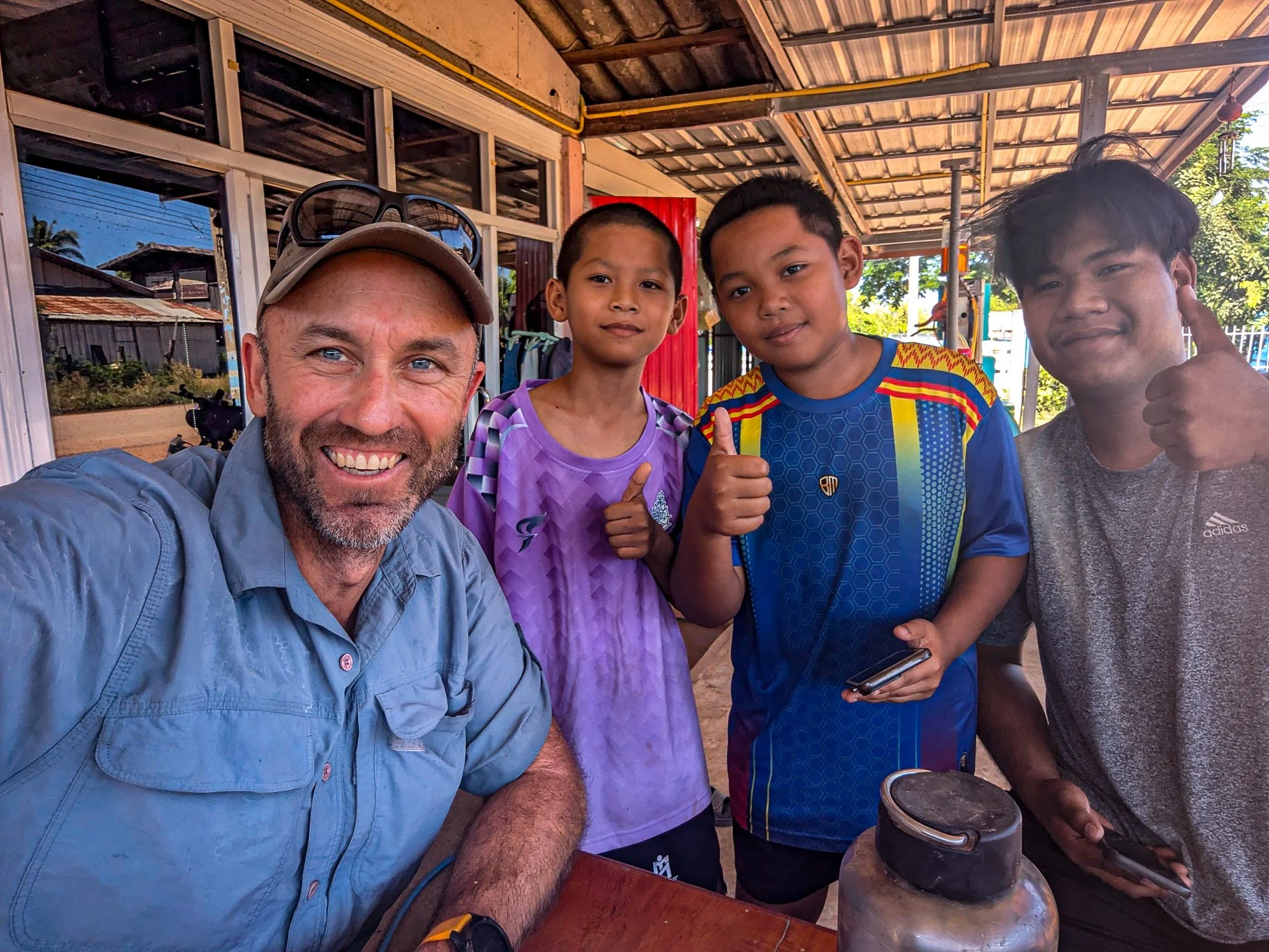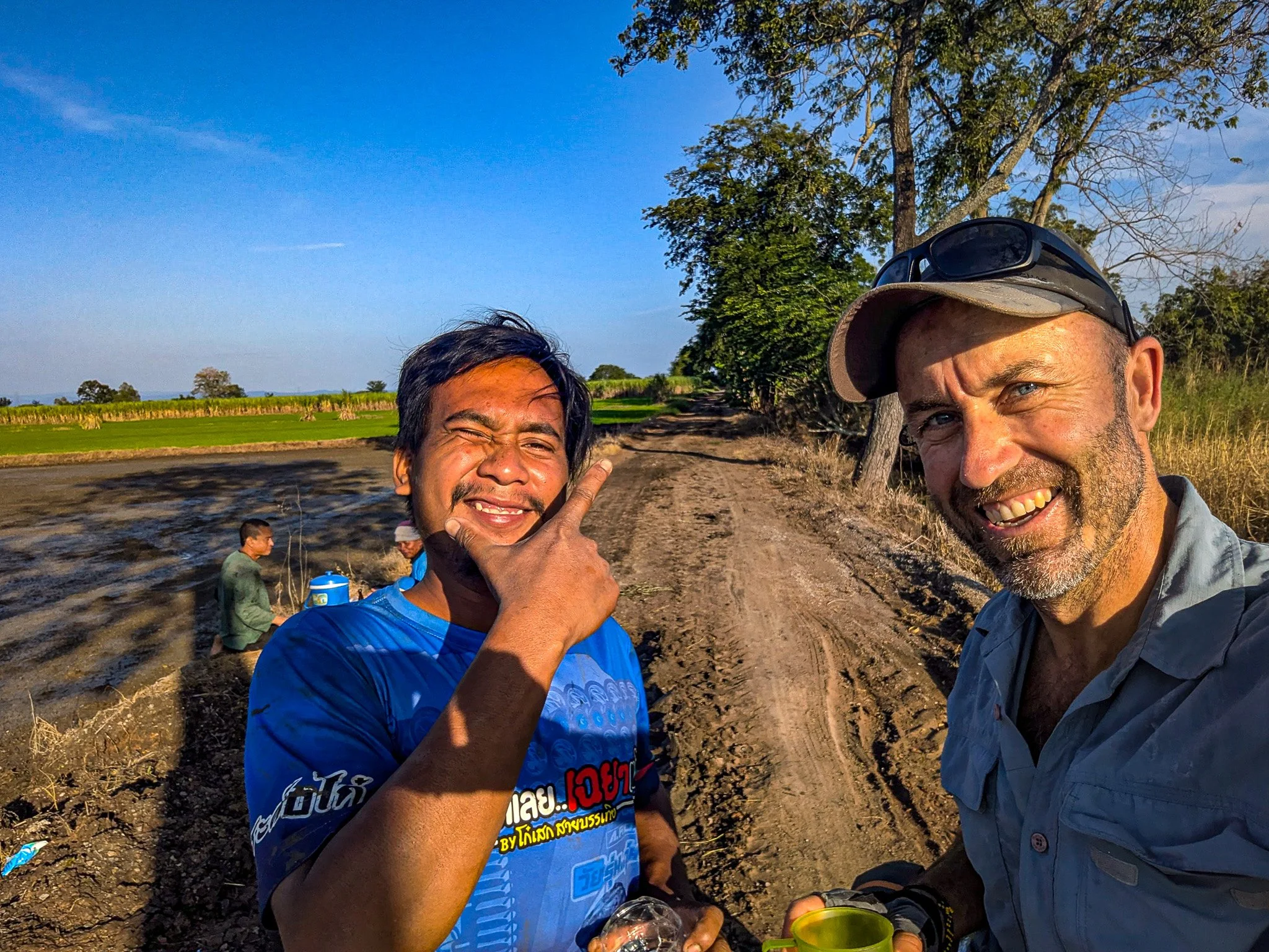 Day 3 and riding north on farm tracks between rice fields. This local farmer accosted me and handed me a cup of rice spirit. I never once had a problem with any Thai people during my time in the country.