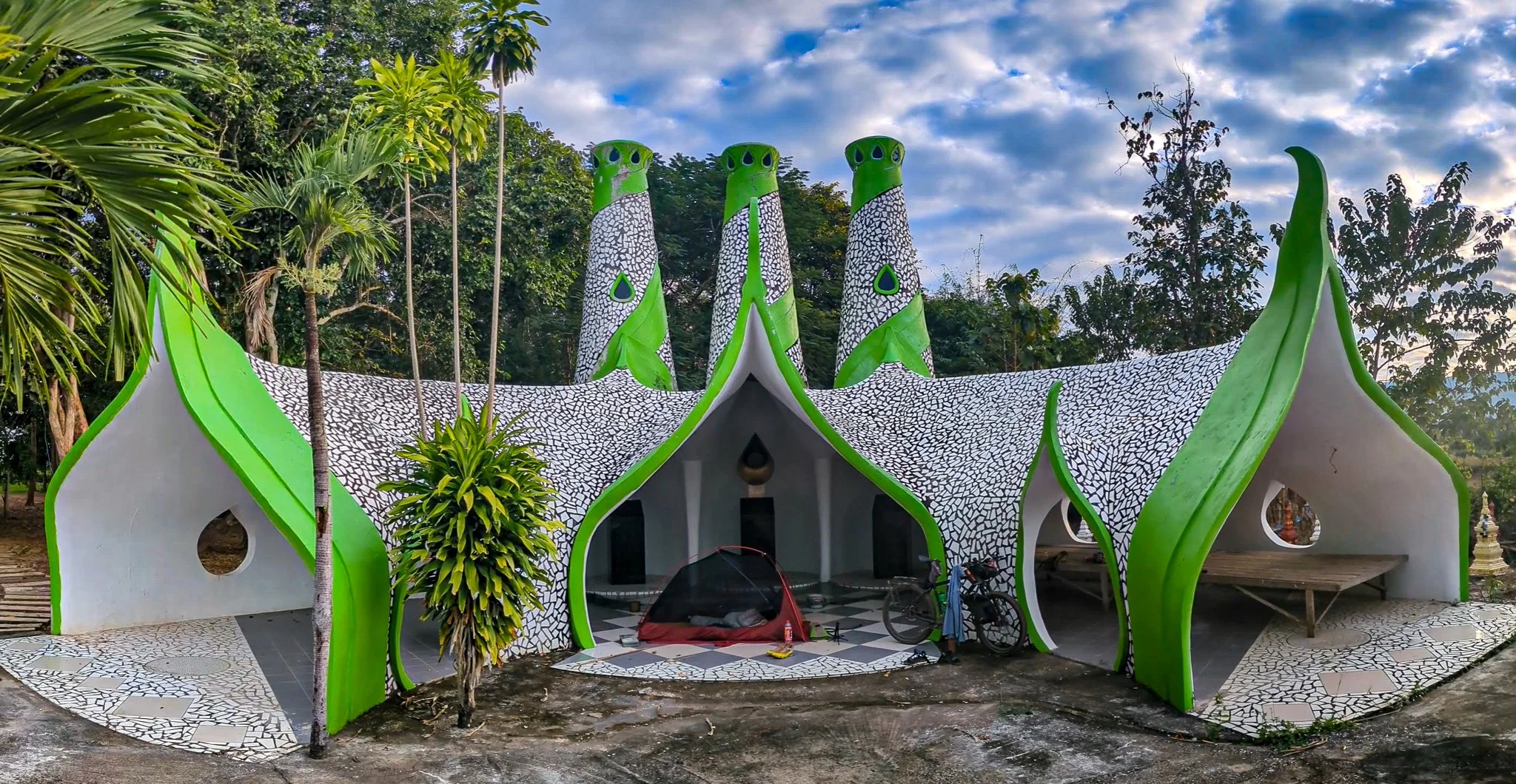 I sometimes used Google maps to identify temples where it might be possible to camp, especially if the temple had been tagged with photos, which many have. This particular temple was architecturally unique. I saw no other like it in Thailand.
