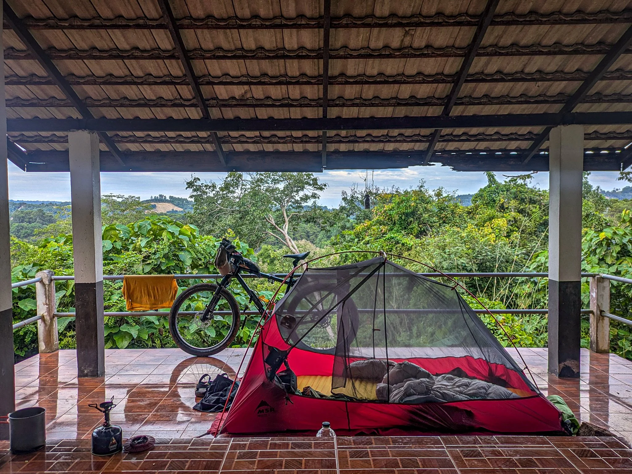 Google maps showed an area of forest with a temple structure within it. I decided to ride up here on Day 14 and pitched my tent a short distance from the temple. The temple wasn’t active - so no pre-dawn wake up call, and surprisingly no dogs. A peaceful night.