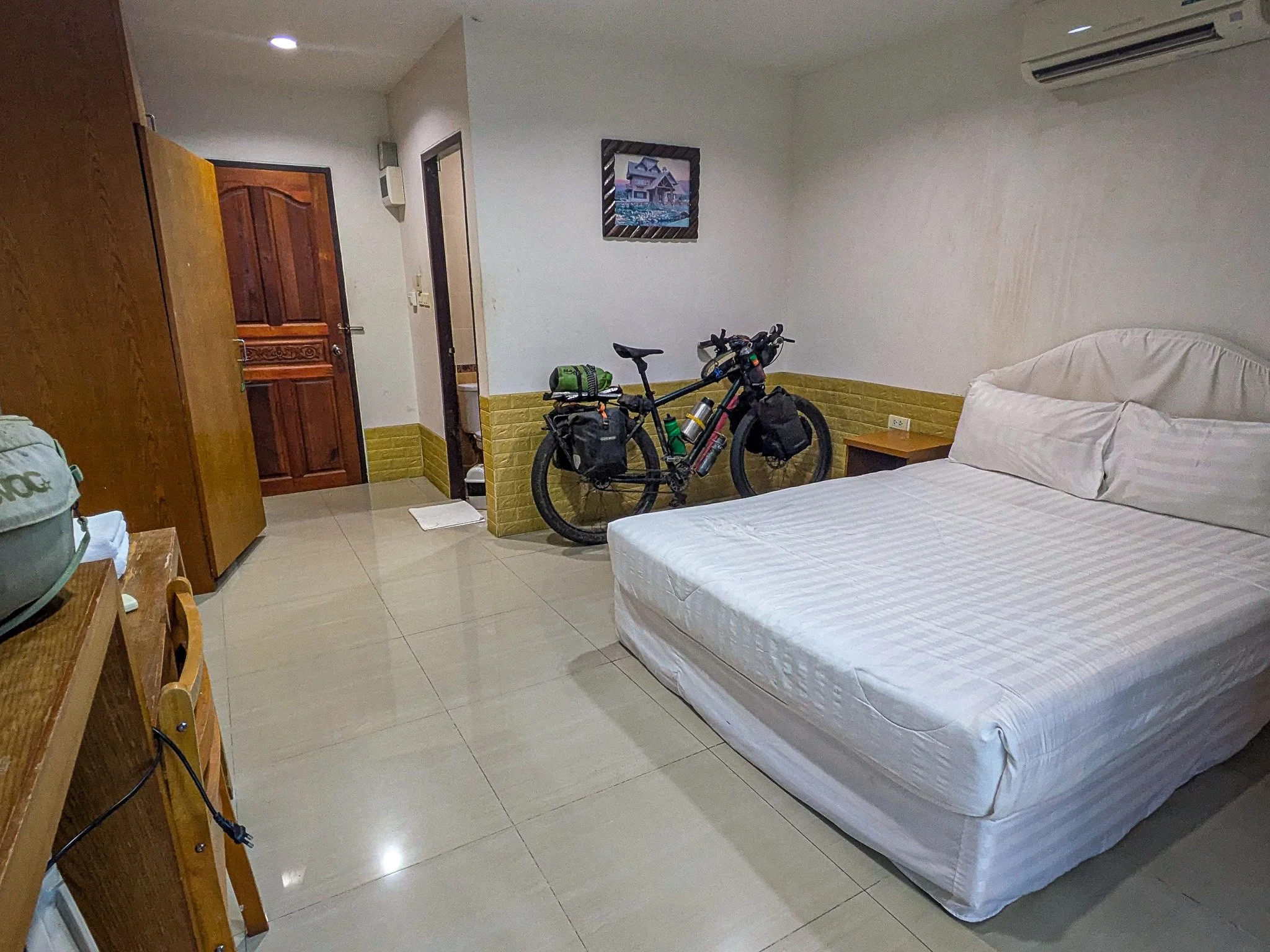 Lots of accommodation options as usual. In almost all rooms I stayed in Thailand I was able to wheel my bicycle inside the room with no issues.