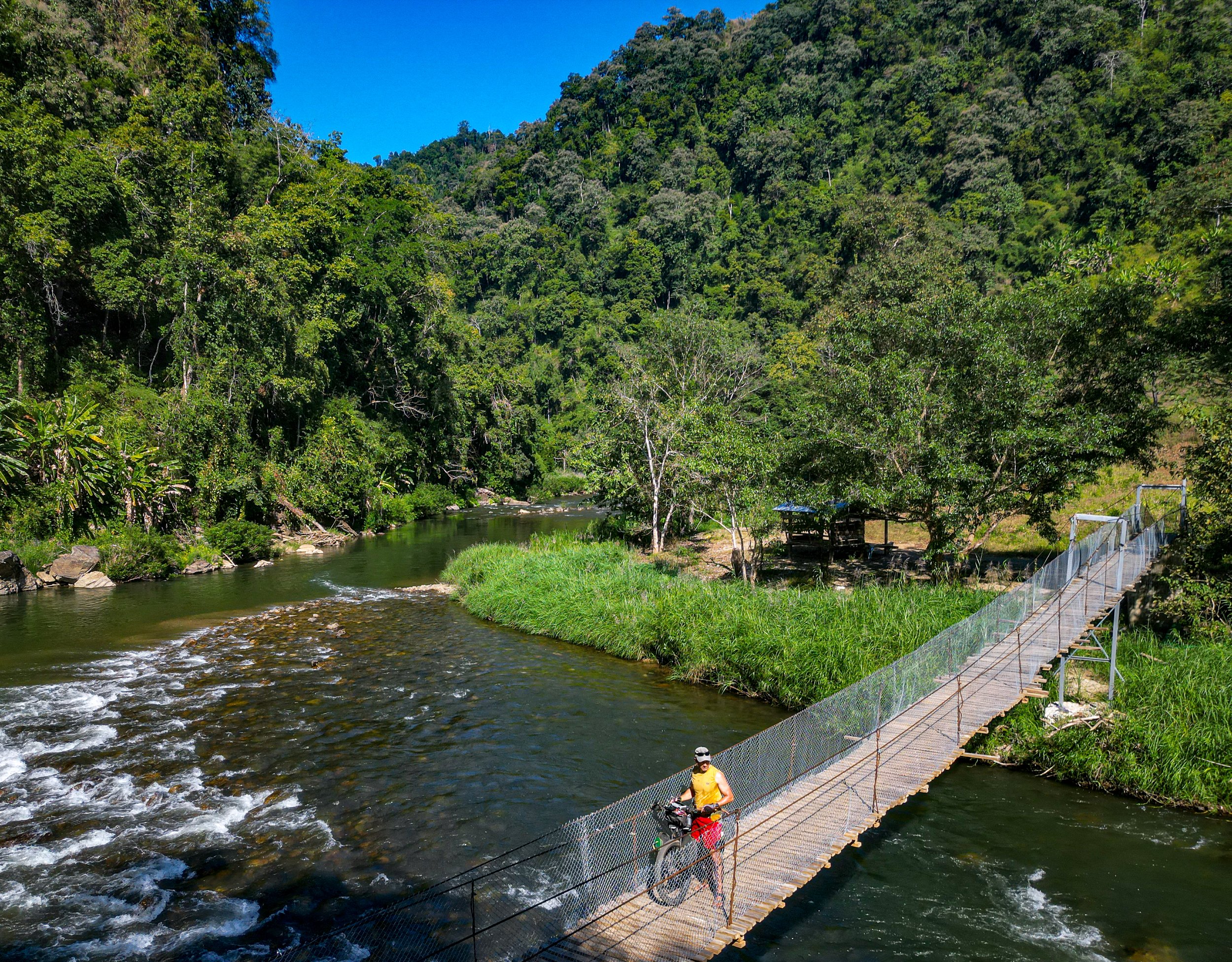 Day 27 in Thailand involved riding trails that komoot/open source mapping didn’t recognise. I used satellite imagery to view tracks and guess that evidence of buildings close to the river I needed to cross would mean there was a bridge, and if not some boat option to cross it.