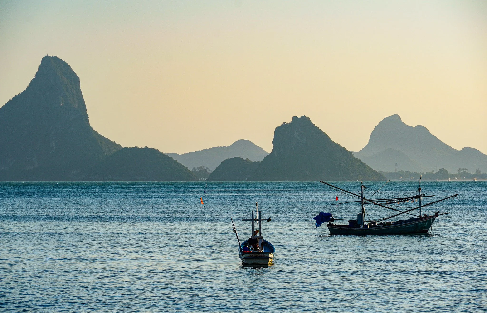 Colourful fishing boats as I reach the Gulf of Thailand on Day 39.