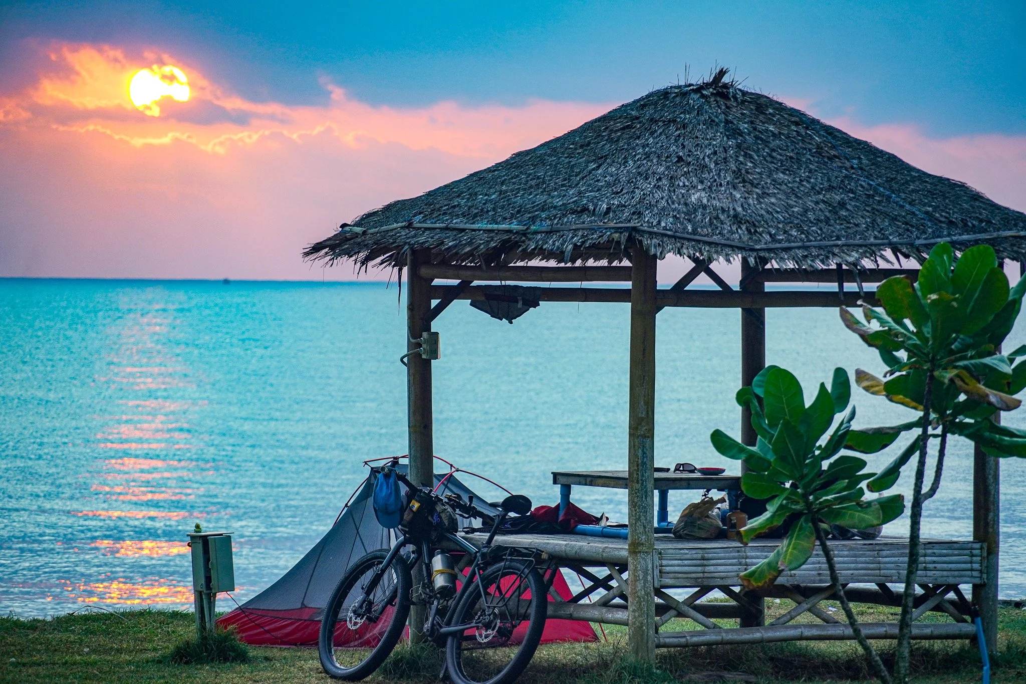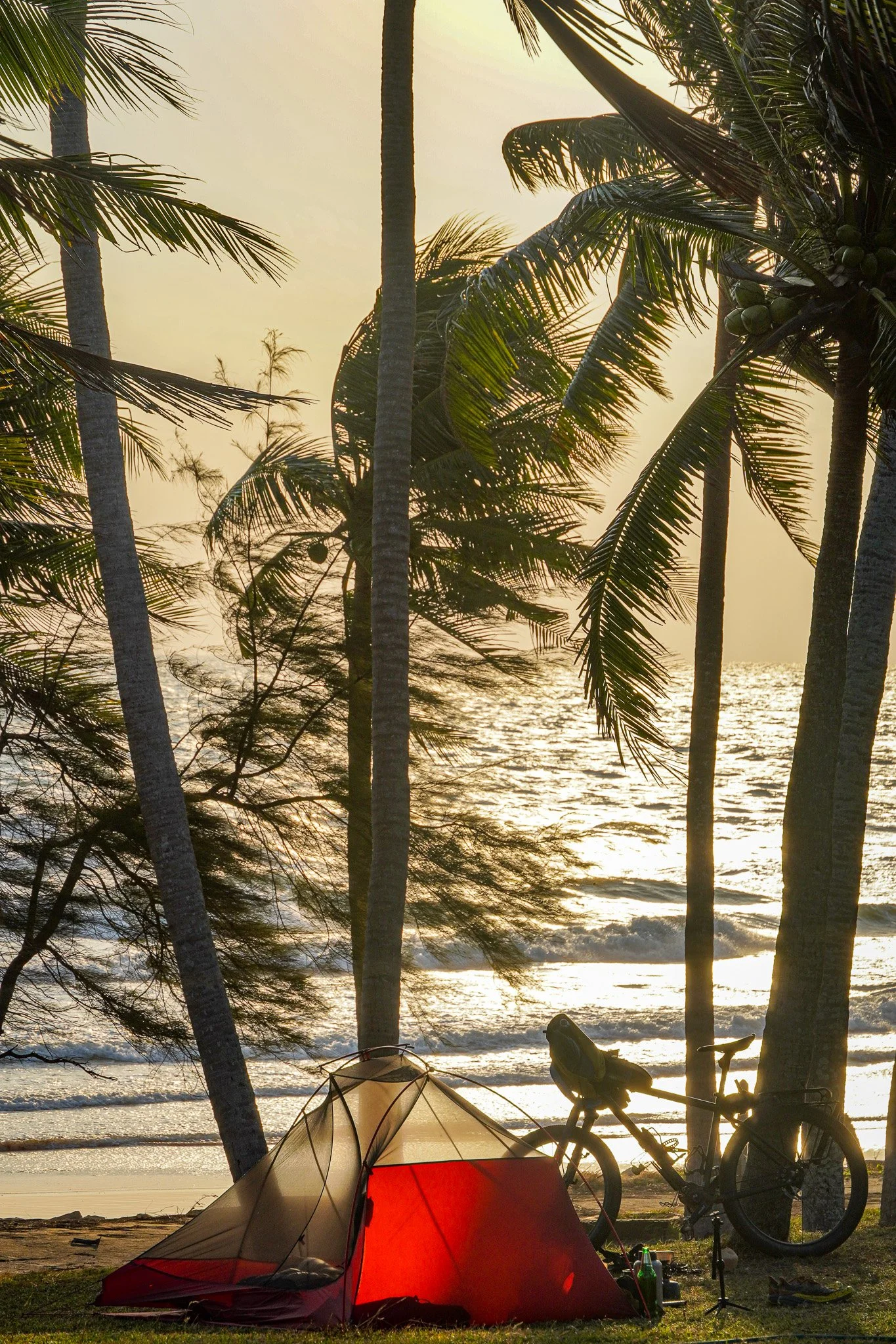 Next beach camp on Day 41. I arrived and the owner greeted me with a complimentary coconut.