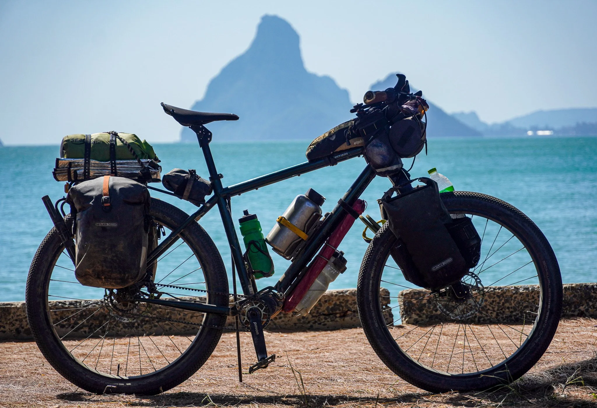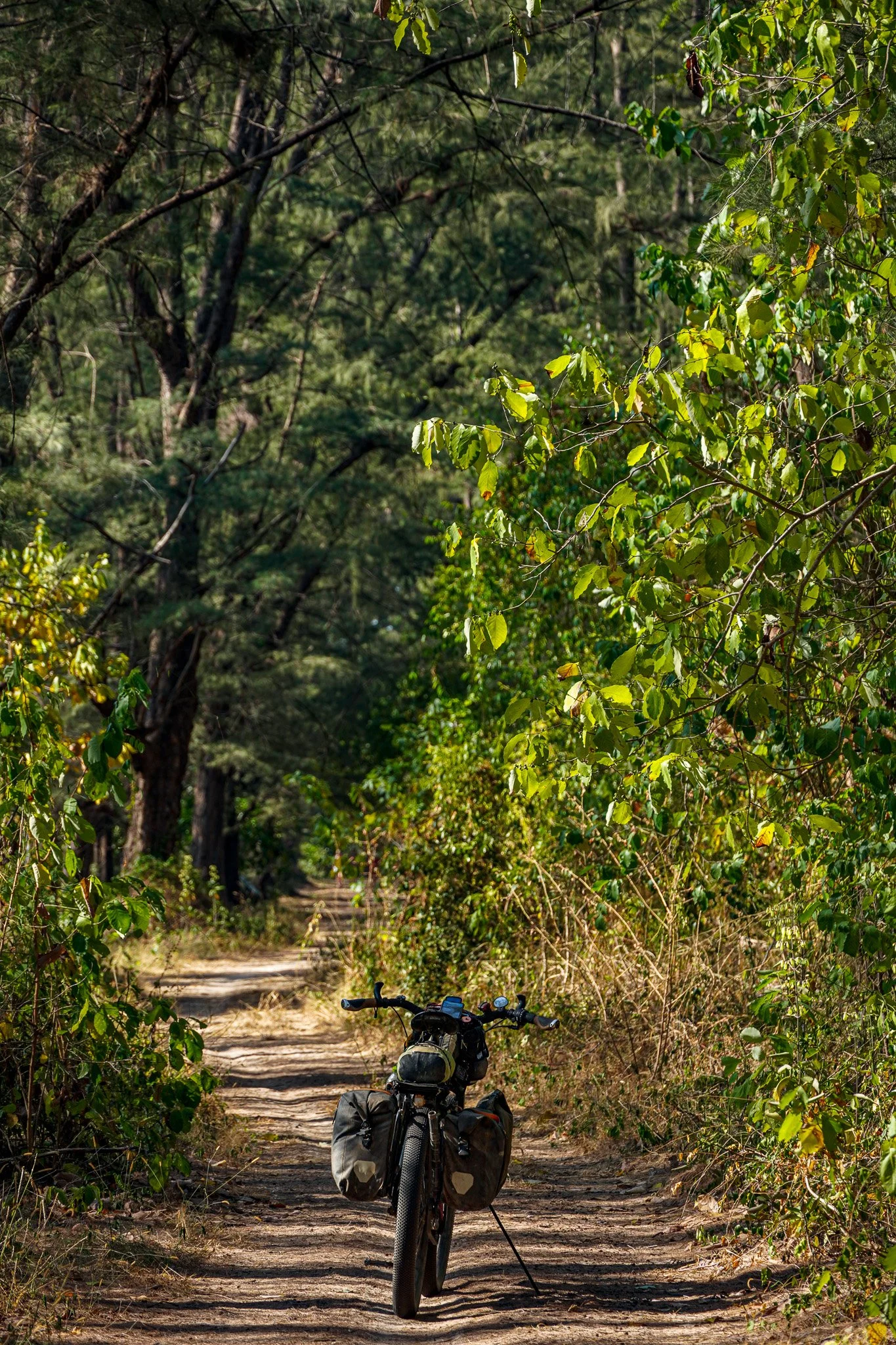 Cycling out of Wanakon National Park. Happy to have wide tyres for sandy stretches like this.